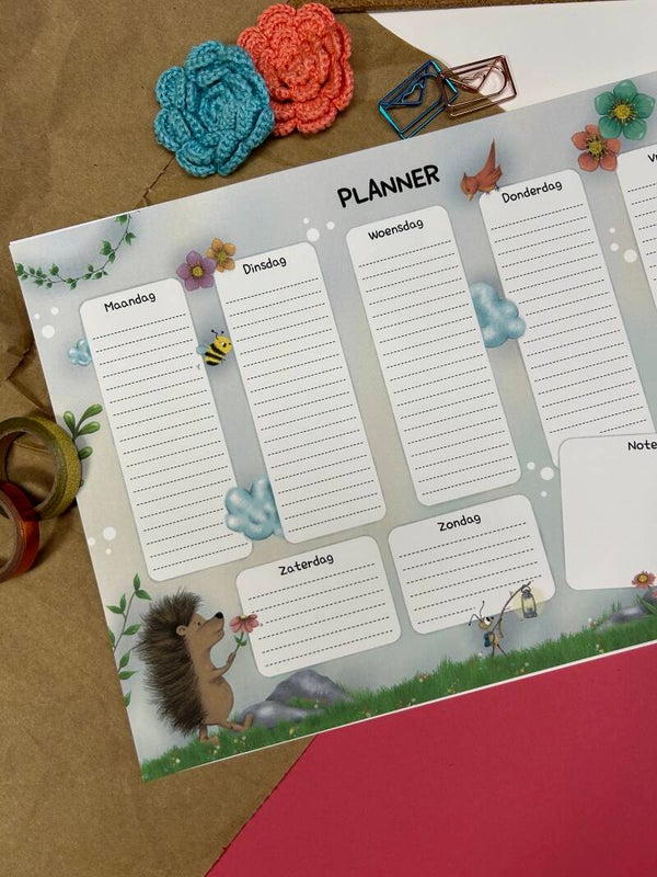 Voorzien van alle dagen, een extra vakje voor notities en handig afscheurbaar. De leuke tekening maakt de start van je week sowieso al de moeite waard!