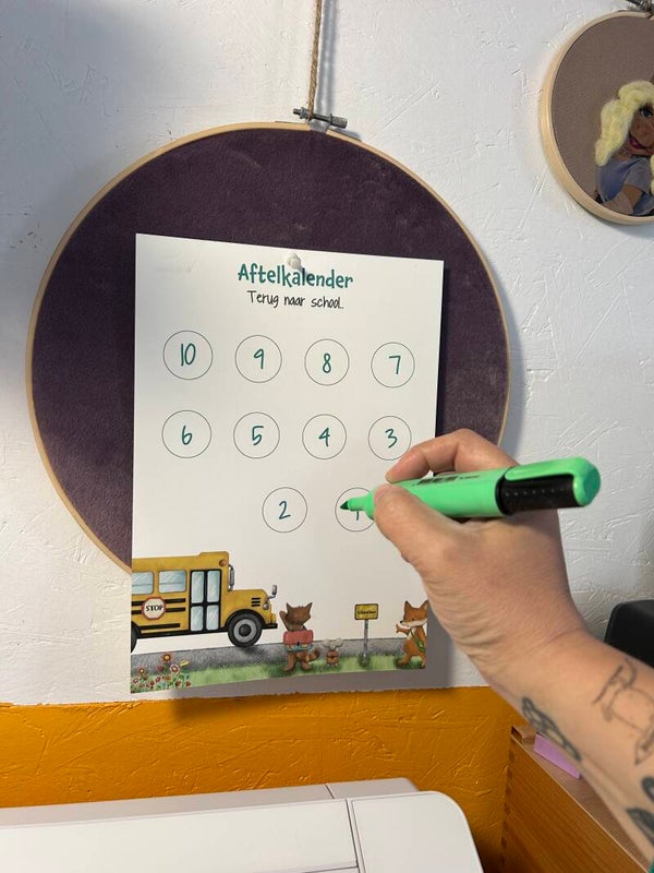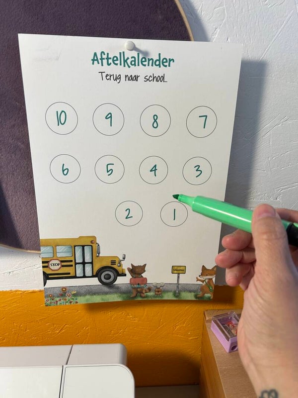 Aftellen naar de eerste schooldag of een nieuwe klas? Deze vrolijke aftelkalender 'Naar school' helpt je kind op een visuele manier toeleven naar de start van het schooljaar.